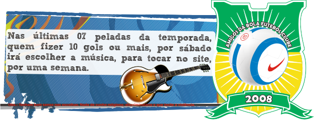 Só sei que este semestre da pelada tá uma zona primeiro começou com uma regra de 01 ponto para cada gol, depois mudou para fez gol 3 pontos, colete molhado, as vitórias são marcadas erradas.....só sei de uma coisa eu vou é beber para esquecer os problemas..............vou entra na justiça e pedir o cancelamento...kakakakakka...........e pra piora o Raphael tá entre os primeiros.......akakkakakaka